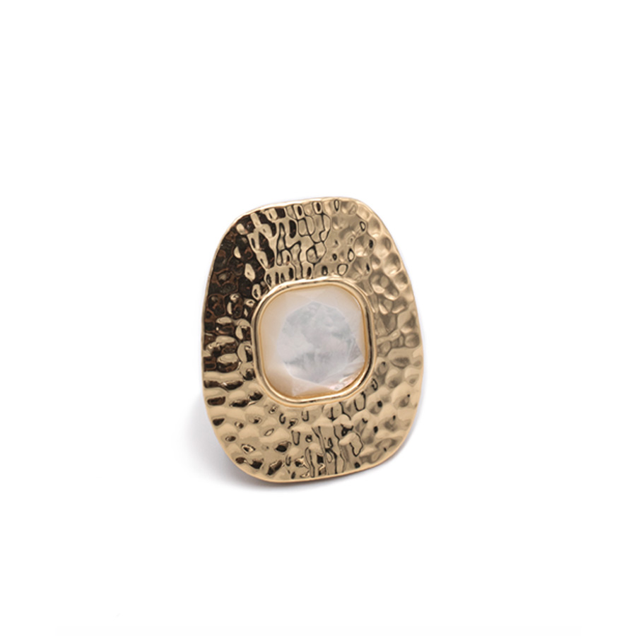 Nuova Retrò brooch with mother of pearl and hammered polished surface