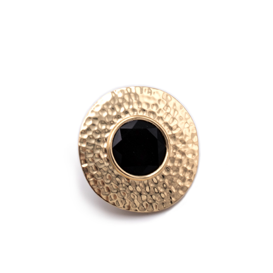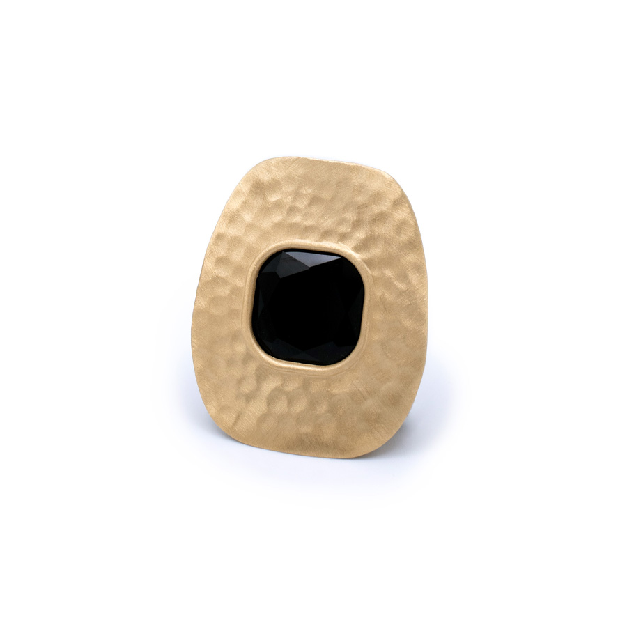Nuova Retrò brooch with black glass paste and hammered polished surface