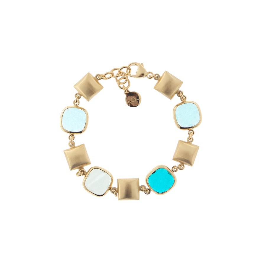 Aquacaramelle Marine bracelet with glass paste in the shades of petrol color and brushed square soap-shaped elements